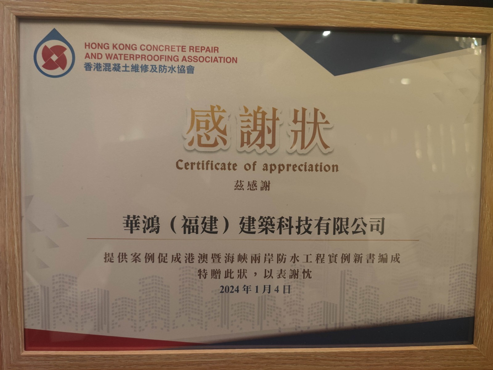 福建華鴻經(jīng)典工程案例榮獲入選《港澳暨海峽兩岸防水工程實(shí)例》一書